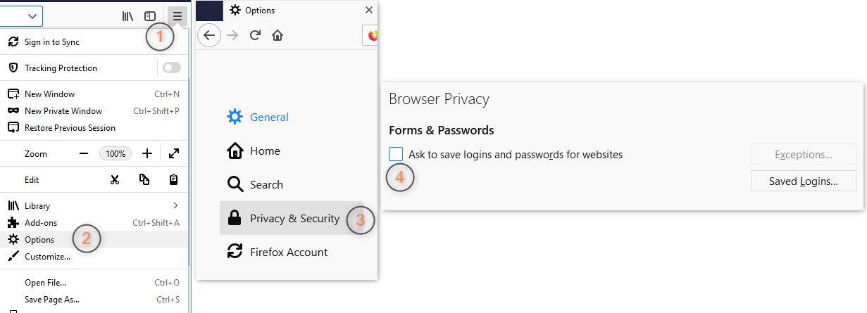 To disable password saving in Firefox, launch Firefox and perform the following steps.