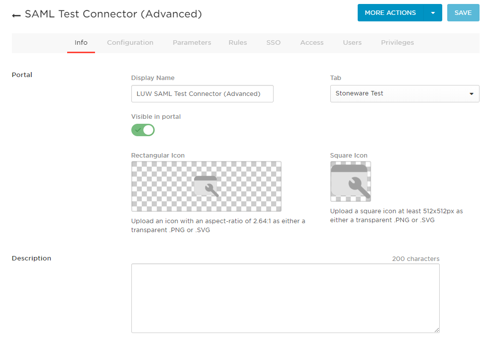 4. Click on "LUW SAML Test Connector (Advanced)" app