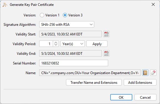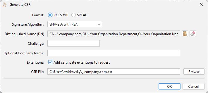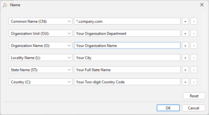 • Enter CN as *.company.com (replacing company.com with your domain)
